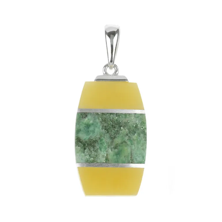 Baltischer Bernstein & Fuchsit Mosaik Silber-Anhänger