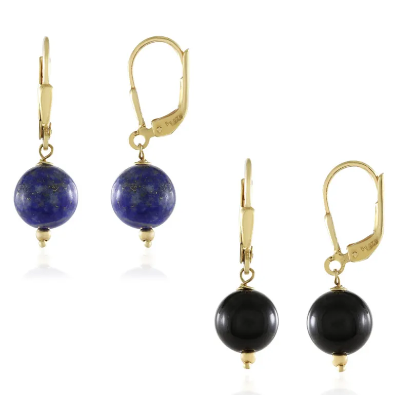 Lapis & Onyx Goldplattierte Silberohrringe