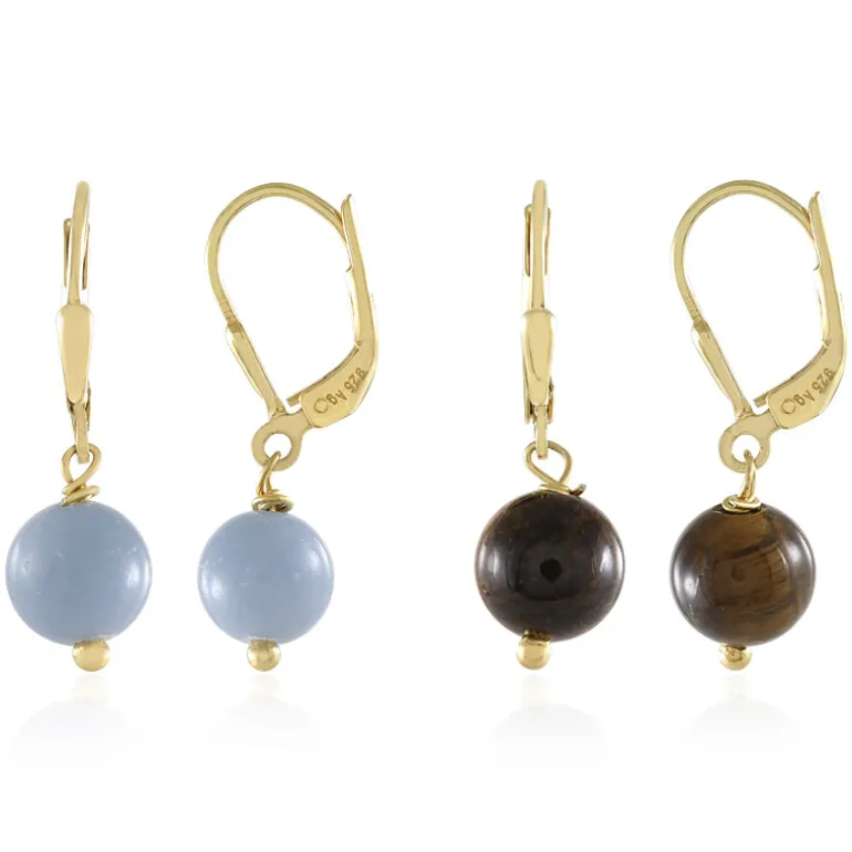 Tigerauge Angelit Goldplattierte Silberohrringe