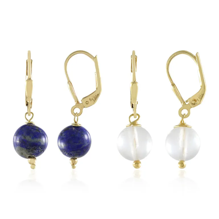 Regenbogen Mondstein & Lapislazuli Vergoldete Ohrringe