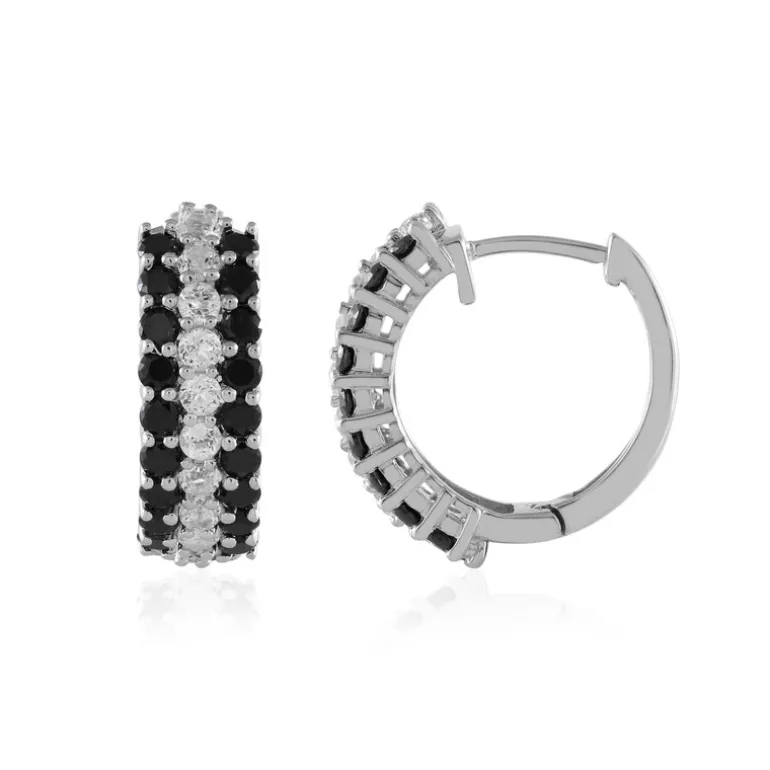Erleben Sie zeitlose Eleganz mit diesen schwarzen Spinell-Ohrringen aus platiniertem 925er Sterlingsilber. Die 20 mm großen Ohrringe bestehen aus 36 schwarzen Spinellen und 20 weißen Topasen und haben insgesamt 2,34 Karat. Perfekt, um jedes Outfit aufzuwerten, ob leger oder formell. Sie sind ideal für Abende oder besondere Anlässe und verleihen einen Hauch von Raffinesse und Charme.