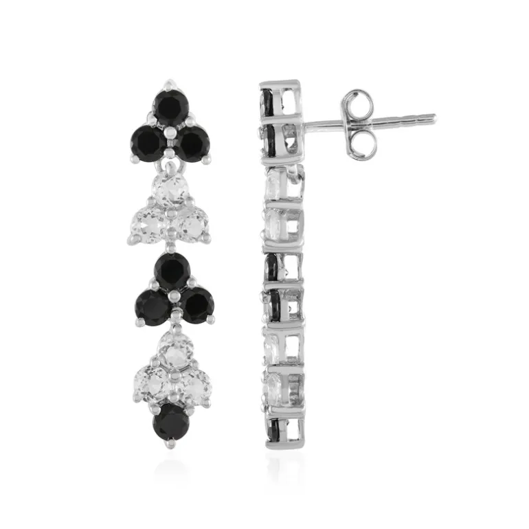 Tauchen Sie ein in die Welt der Raffinesse mit diesen auffälligen Ohrringen aus Sterlingsilber, die 14 schillernde schwarze Spinelle aus Thailand und 12 schimmernde weiße Topase aus Brasilien enthalten. Mit einem Gesamtkaratgewicht von 3,132 bieten diese Ohrringe ein atemberaubendes Kontrastspiel, das perfekt für die Abendgarderobe oder besondere Anlässe ist. Schmücken Sie Ihren Look mit diesen eleganten 30 mm großen Kostbarkeiten und lassen Sie Ihren Stil erstrahlen.