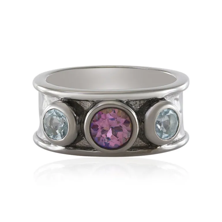 Entdecken Sie die Anziehungskraft dieses Rings aus Sterlingsilber mit einem bezaubernden 0,396ct rosa Mystic Quartz, der von zwei himmelblauen Topasen von insgesamt 0,569ct umgeben ist. Die erfrischende Mischung aus sanftem Rosa und heiterem Blau, die beide aus den üppigen Landschaften Brasiliens stammen, macht diesen Ring zu einem Schatz für jede Sammlung. In 925er Sterlingsilber gefasst, reflektiert das bezaubernde Design bei jeder Bewegung das Licht. Dieser Ring eignet sich perfekt für das tägliche Tragen oder um einem besonderen Outfit einen Farbtupfer zu verleihen. Er ist eine bezaubernde Ergänzung Ihres Schmuckrepertoires.