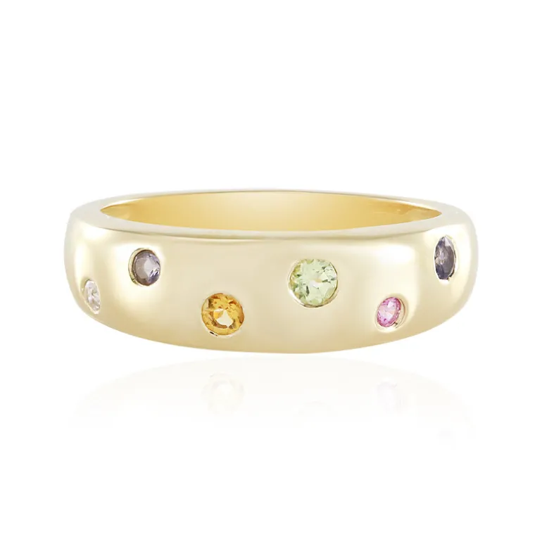 Entdecken Sie den verspielten Charme unseres Multicolor Edelsteinrings mit einer bezaubernden Mischung aus Iolith, Peridot, Citrin, rosa Saphir und Zirkon. Dieses wunderschön gearbeitete Stück aus 925er Sterlingsilber mit einer üppigen Goldauflage wiegt etwa 1,8 Gramm. Dieser moderne und doch zeitlose Ring ist perfekt, um Ihrem Alltagsoutfit einen Hauch von Farbe zu verleihen oder ein schickes Cocktailkleid zu ergänzen. Genießen Sie das subtile Funkeln und die leuchtenden Farben als Teil Ihres unverwechselbaren Looks.