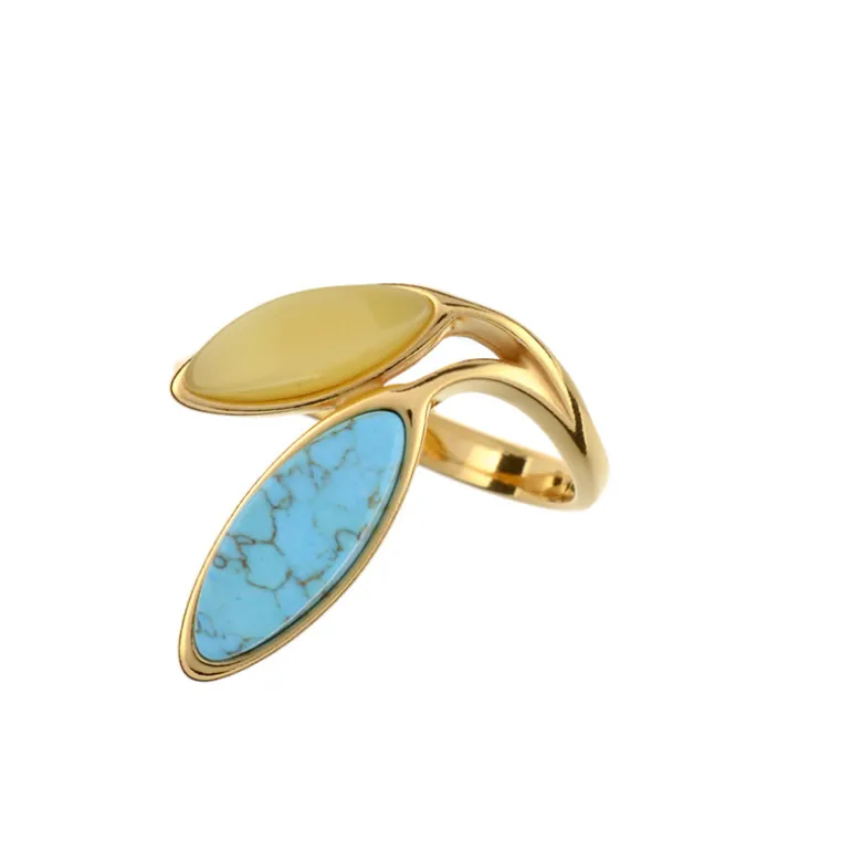 Türkis & Bernstein Goldplattierter Silberring