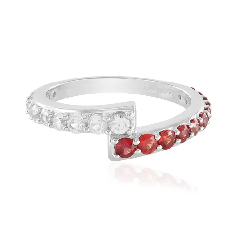 Dieser atemberaubende Ring funkelt mit einer Kombination aus tansanischen Rubinen und kambodschanischen Zirkonen, die in platiniertem 925er Sterlingsilber gefasst sind und dadurch besonders schimmern. Mit einem Gesamtgewicht von 1,17 Karat sind die Edelsteine elegant in einem schillernden Rot und Weiß angeordnet. Dieses vielseitige Schmuckstück eignet sich perfekt, um Ihrer Abendgarderobe einen Hauch von Raffinesse zu verleihen und lässt sich mühelos vom Büro bis zum Ausgehabend kombinieren.