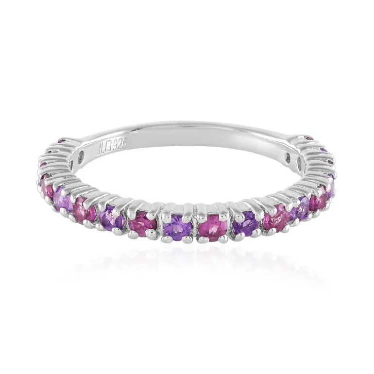 Entdecken Sie die harmonische Mischung aus leuchtenden sambischen Amethysten und glänzenden indischen Rhodolithen in diesem exquisiten Ring aus 925er Sterlingsilber. Die abwechselnden Schattierungen von Lila und Rosa, jeder Edelstein sorgfältig rund geschliffen, vereinen sich zu einer Aura der Eleganz, die perfekt für jeden Anlass ist. Dieses Meisterwerk mit 0,637 Karat und einem Gewicht von ca. 1,43 g ist mehr als nur ein Accessoire; es ist ein Statement der Raffinesse. Er ist ideal, um Ihrem Ensemble einen Farbtupfer zu verleihen, und sein zeitloses Design sorgt dafür, dass Sie ihn noch viele Jahre lang schätzen werden.