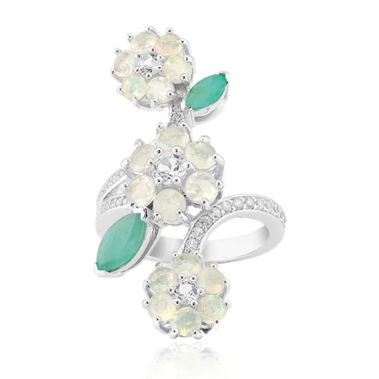 Smaragd & Opal Sterling Silber Ring mit Blumen