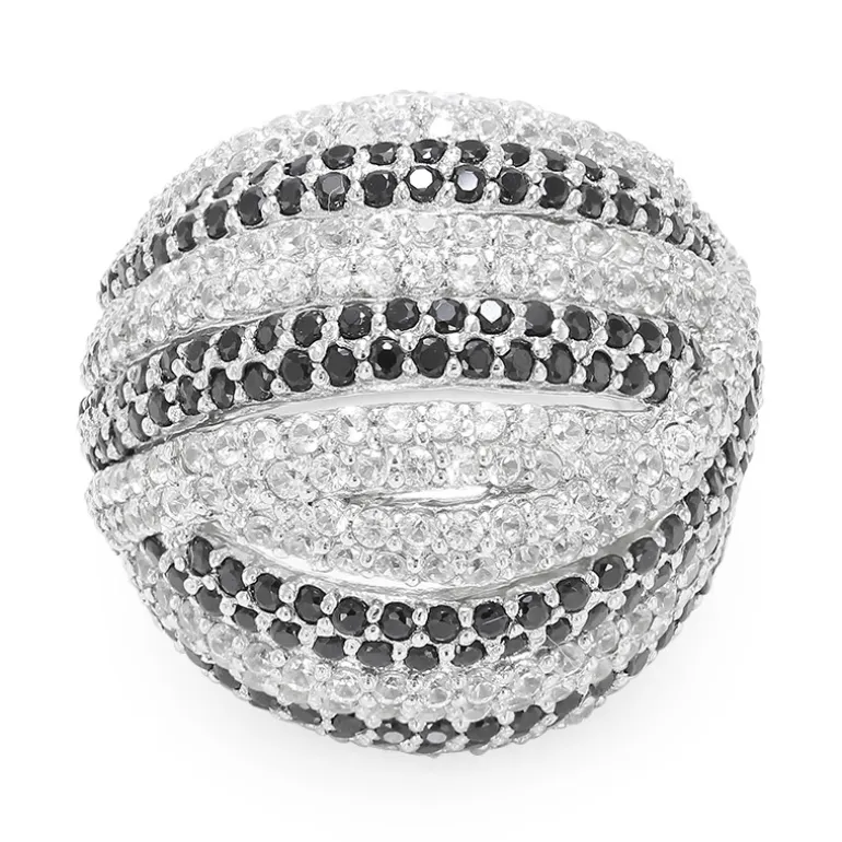 Dieses atemberaubende Schmuckstück bringt den kühnen Kontrast von 170 thailändischen Black Spinel Edelsteinen gepaart mit 222 schillernden kambodschanischen Zirkonen perfekt zur Geltung. Mit einem Gesamtkaratgewicht von 7,29 ct, gefasst in hochwertigem 925er Sterling Silber, strahlt der Ring ein fesselndes Funkeln aus. Jeder Edelstein ist sorgfältig im runden Brillantschliff geschliffen, um seine reflektierende Schönheit zu maximieren. Das großzügige Gewicht von 12,44 Gramm Silber verleiht diesem luxuriösen Accessoire eine besondere Note. Der Ring ist ideal für elegante Abende oder um bei besonderen Anlässen ein Zeichen zu setzen und stellt eine vielseitige Ergänzung für jede Schmucksammlung dar.