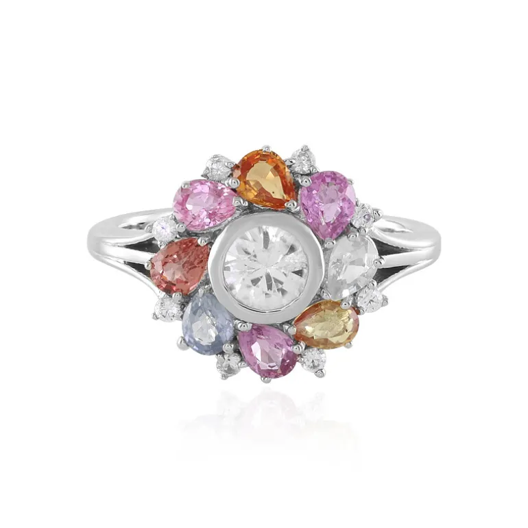Multicolor Kambodschanischer Zirkon & Saphir Silber Ring