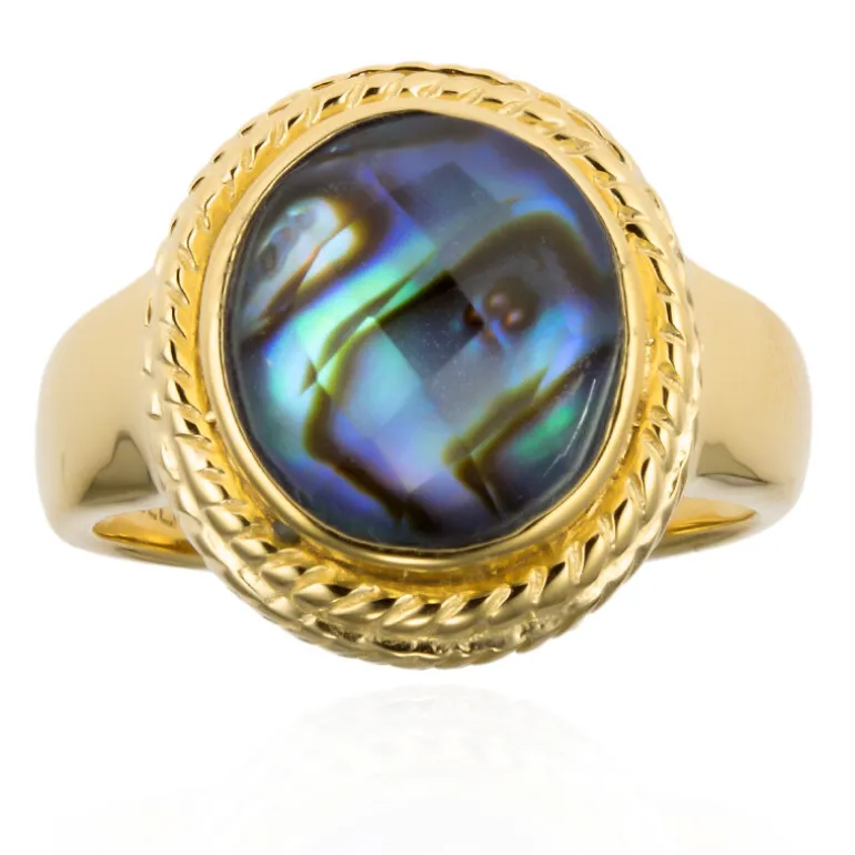 Madagaskar Weißer Quarz & Abalone Vergoldeter Ring, 2,95ct