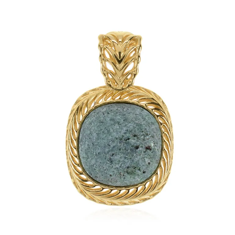 Entdecken Sie den zeitlosen Charme unseres brasilianischen Fuchsit-Anhängers, der in glänzendem 925er Sterlingsilber mit luxuriöser Goldplattierung gefasst ist. Dieses raffinierte Stück verfügt über einen antiken Kissen-Cabochon-Schliff, der einen 7,26-karätigen Edelstein in faszinierenden Grüntönen und subtilen Erdtönen präsentiert. Die filigrane Fassung des Anhängers mit den Maßen 27 x 16 mm strahlt Eleganz aus und hebt die natürliche Schönheit des Fuchsits gekonnt hervor. Er passt sowohl zu legeren als auch zu formellen Anlässen und ist eine vielseitige Ergänzung Ihrer Sammlung, die bei jeder Veranstaltung die Aufmerksamkeit auf sich zieht.