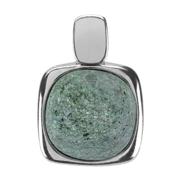 Lassen Sie sich von der grünen Anziehungskraft dieses Fuchsit-Anhängers aus Sterlingsilber verzaubern. Der 7,35-karätige Edelstein aus den üppigen Ländern Brasiliens wurde sorgfältig zu einem antiken Kissen-Cabochon verarbeitet, der in eine elegante Fassung aus 925er Sterlingsilber eingebettet ist. Mit seinen ungefähren Maßen von 21×14 mm strahlt dieser Anhänger zeitlose Eleganz aus und ist damit eine vielseitige Ergänzung für jede Schmucksammlung. Sein sanfter grüner Farbton lädt zu einer Vielzahl von Styling-Optionen ein: Kombinieren Sie ihn mit einer weißen Bluse für einen eleganten Auftritt am Tag oder mit einem kleinen schwarzen Kleid für einen glamourösen Abend.
