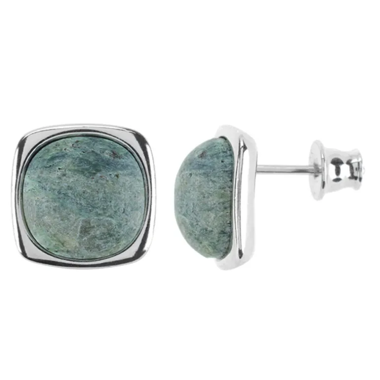Entdecken Sie die ruhige Schönheit dieser brasilianischen Fuchsit-Ohrringe mit Kissen-Cabochon. Diese Ohrringe aus poliertem 925er Sterlingsilber mit einem Gewicht von 7,91 Karat strahlen eine subtile Anmut aus, die perfekt ist, um Ihrem Ensemble einen Hauch natürlicher Eleganz zu verleihen. Die einzigartigen Grüntöne verkörpern die organische Essenz der üppigen Landschaften Brasiliens. Sie eignen sich sowohl für einen legeren Brunch als auch für eine elegante Abendveranstaltung und sind eine vielseitige Ergänzung Ihrer Kollektion.