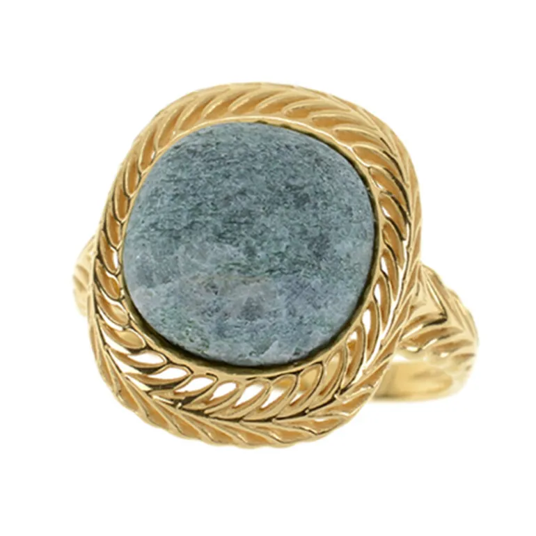 Dieser atemberaubende Ring zeigt einen antiken Kissen-Cabochon aus brasilianischem Fuchsit mit einem Karatgewicht von 5,45. Gefertigt aus 925er Sterlingsilber und mit einer luxuriösen Goldauflage versehen, verbindet der Ring den natürlichen Charme des Fuchsits mit der Opulenz des Goldes. Das blattähnliche Muster, das den Edelstein umgibt, verleiht diesem eleganten Schmuckstück einen organischen Touch, der jedem Outfit einen Hauch von naturinspirierter Raffinesse verleiht. Dieser Ring eignet sich sowohl für einen legeren Brunch als auch für einen formellen Abend und ist ein echter Blickfang in Ihrer Sammlung.