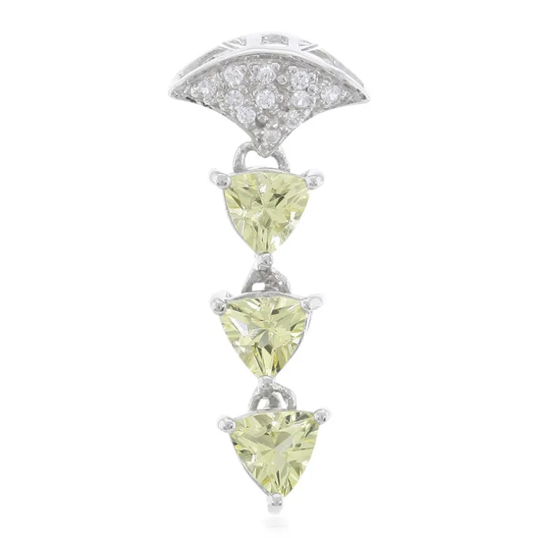 Entdecken Sie die Anziehungskraft unseres gelben Beryll-Anhängers, bei dem der Glanz brasilianischer Edelsteine auf den Schimmer von Sterlingsilber trifft. Drei Berylle im Trillant-Schliff mit insgesamt 0,85 Karat fallen elegant herab und werden durch das Funkeln von elf kambodschanischen Zirkonen ergänzt. Der ca. 1,5 g schwere Anhänger aus 925er Sterlingsilber glänzt mit einem Gesamtkaratgewicht von 0,944ct. Mit seiner zarten Größe von 26,5 x 11 mm eignet er sich sowohl für einen legeren Brunch als auch für eine Gala am Abend. Lassen Sie diesen einzigartigen Anhänger den letzten Schliff für Ihre anspruchsvolle Garderobe sein.