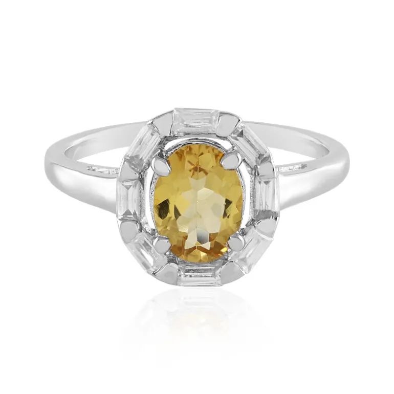 Entdecken Sie die Eleganz dieses prächtigen Rings mit einem brasilianischen gelben Beryll im Ovalschliff von 0,89 Karat, flankiert von funkelnden Baguetten aus kambodschanischem Zirkon von insgesamt 0,612 Karat. Dieser Ring aus platiniertem 925er Sterlingsilber ist ein Zeugnis dauerhafter Schönheit und Raffinesse. Der leuchtende, sonnengebräunte Farbton des Berylls kontrastiert vorzüglich mit dem eisigen Schimmer der Zirkone und macht ihn zum perfekten Accessoire für formelle Anlässe und den Luxus des Alltags. Bringen Sie einen Hauch von Wärme in Ihre Sammlung mit diesem strahlenden Schatz.