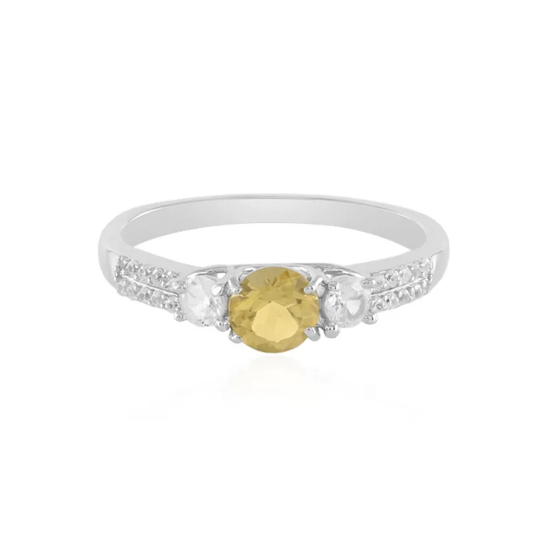 Fangen Sie die Wärme der Sonne mit diesem strahlenden Ring aus brasilianischem gelbem Beryll ein. In der Mitte befindet sich ein rundgeschliffener Edelstein von 0,447ct, flankiert von funkelnden Zirkonen aus Kambodscha von insgesamt 0,438ct. Das Band aus 925er Sterlingsilber ist für zusätzlichen Glanz und Haltbarkeit plattiert. Sein schlankes Profil und sein zartes Funkeln machen ihn sowohl für legere als auch für formelle Anlässe perfekt. Verleihen Sie jedem Outfit einen Hauch von goldener Eleganz mit diesem charmanten Schmuckstück.