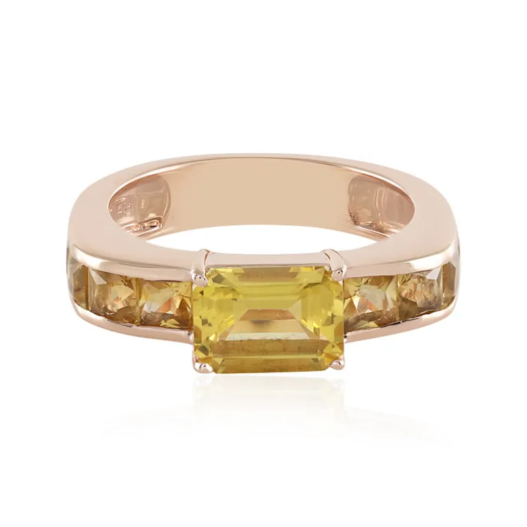 Hüllen Sie Ihren Finger in die Wärme dieses atemberaubenden brasilianischen Goldberyll- und Citrinrings aus 925er rosévergoldetem Sterlingsilber. Der zentrale Edelstein ist ein sonniger Goldberyll im Oktagon-Schliff mit 1,395 Karat, flankiert von acht Zitrinen im Prinzessinnen-Schliff mit insgesamt 1,44 Karat. Das zeitgenössische Design strahlt Eleganz aus, mit einem Gesamtkaratgewicht von 2,835 Karat in einem glänzenden Band mit einem Gewicht von ca. 3,04 g. Perfekt, um sowohl Tages- als auch Abendgarderobe einen Hauch von Sonnenschein zu verleihen, verspricht dieses Schmuckstück ein Gesprächsthema bei geselligen Zusammenkünften oder einem intimen Abendessen zu sein.