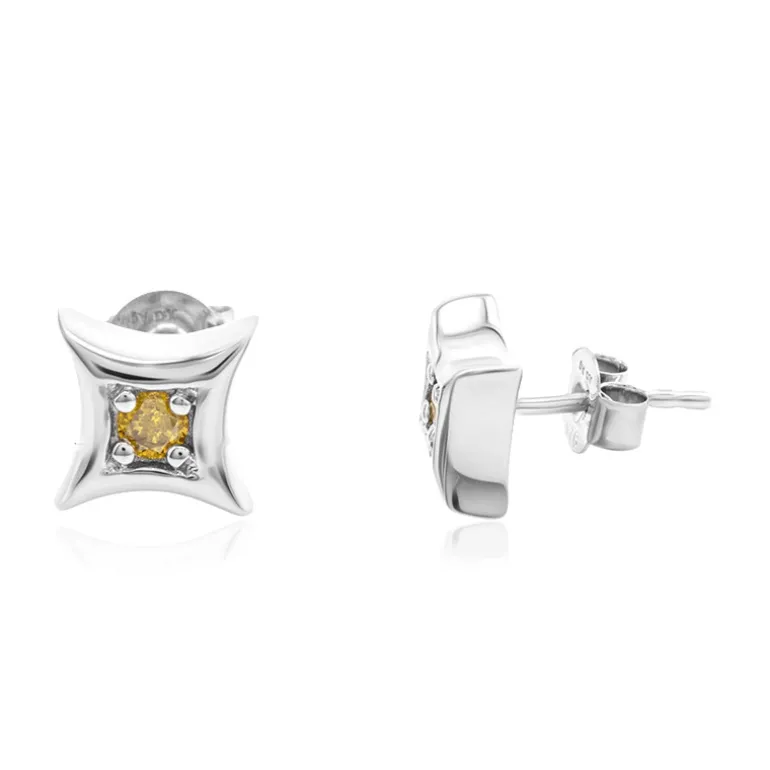 Diese schicken quadratischen Ohrringe sind eine leuchtende Ergänzung für jedes Ensemble. Jeder Ohrring aus platiniertem 925er Sterlingsilber trägt einen funkelnden gelben Diamanten in der Mitte, der von einem Halo aus glänzenden Verzierungen umgeben ist. Mit einem Gesamtkaratgewicht von 0,176 ct. bestechen diese Ohrstecker durch ihr einzigartiges Design und ihren leuchtenden Farbton. Sie eignen sich perfekt, um einem klassischen Look einen farbigen Akzent zu verleihen oder ein farbenfrohes Outfit für Tagesveranstaltungen oder Abende zu ergänzen.