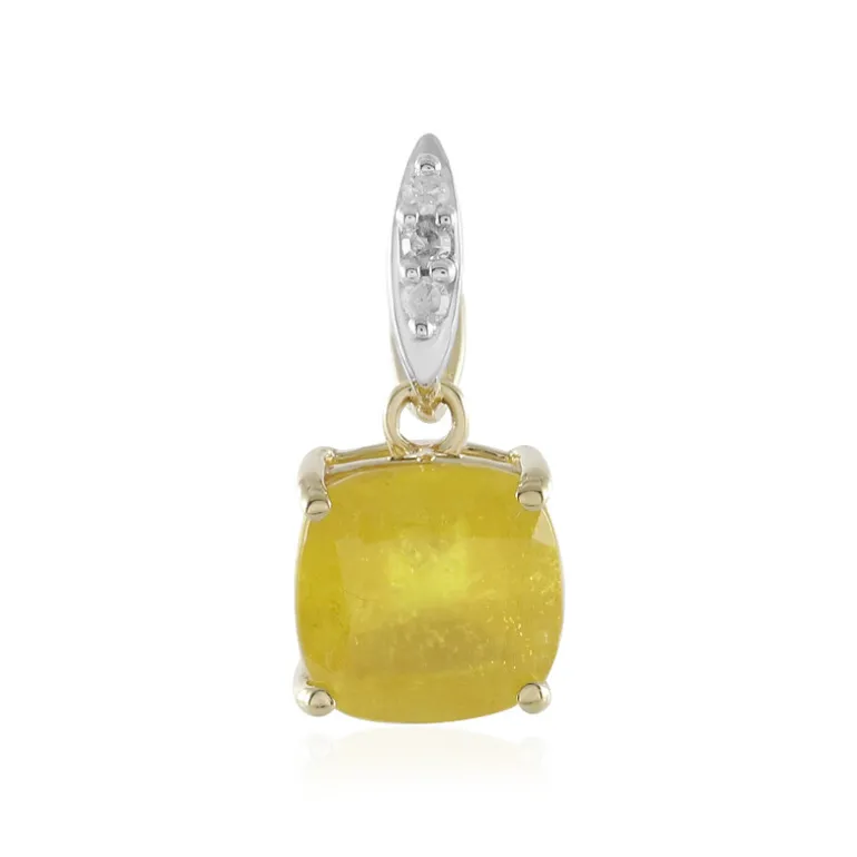 Entdecken Sie die Anziehungskraft eines zeitlosen Schmuckstücks mit diesem exquisiten Anhänger aus 9 Karat Gelbgold mit einem gelben Saphir im Kissenschliff von 1,08 Karat aus Madagaskar, der von funkelnden Diamantakzenten ergänzt wird. Der warme Farbton des Saphirs strahlt Charme und Eleganz aus und macht ihn zu einem idealen Accessoire für den Tag und den Abend. Kombinieren Sie diesen klassischen Anhänger mit einer eleganten Goldkette, um Ihr Dekolleté bei jeder gesellschaftlichen Zusammenkunft oder beruflichen Veranstaltung in Szene zu setzen.