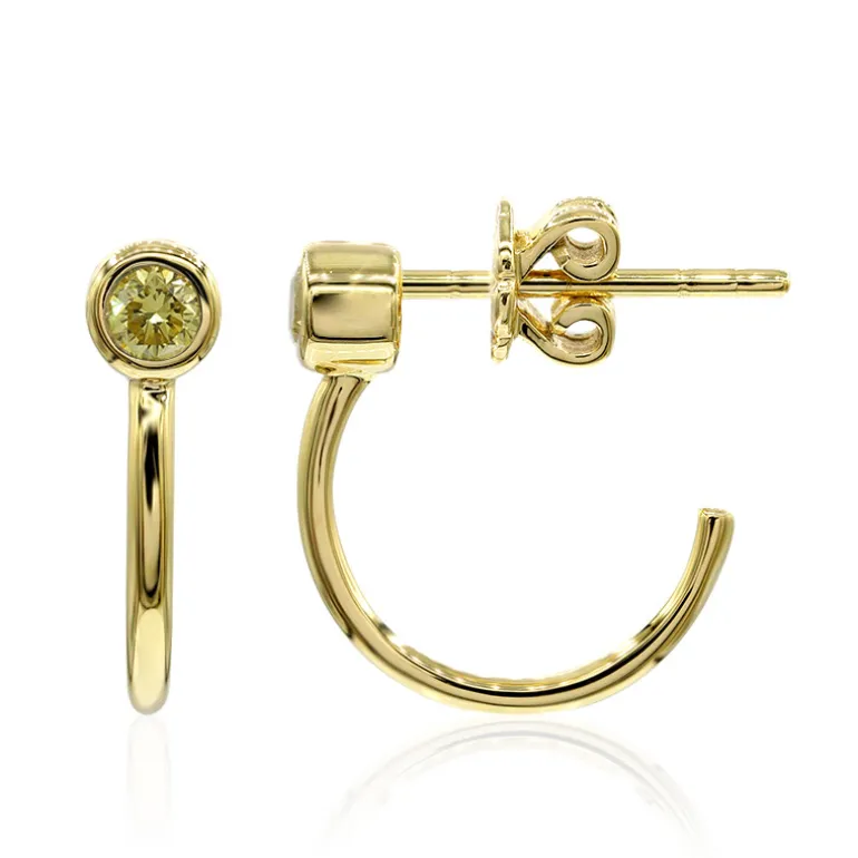 Unsere neueste Kreation, diese Creolen, sind der Inbegriff von Anmut. Sie sind mit 0,15 Karat gelben VS1-Diamanten besetzt, die in den Glanz von 9-karätigem Gold eingebettet sind. Jeder Ohrring ist sorgfältig gearbeitet, um die strahlenden 2,7 mm großen runden Diamanten im Brillantschliff hervorzuheben. Mit einem Gewicht von ca. 1,94 Gramm ergänzt das edle Gelbgold nahtlos die Wärme der Diamanten. Mit ihrem vielseitigen 15-mm-Reifendesign sind diese Ohrringe das perfekte Accessoire sowohl für ein legeres Brunch als auch für eine elegante Abendveranstaltung.