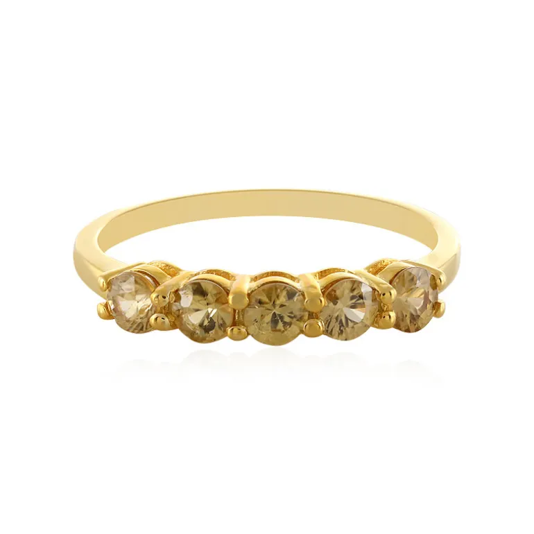 Dieser exquisite Ring mit gelbem Zirkon aus Tansania verleiht Ihrem Outfit ein strahlendes Funkeln. Fünf strahlende runde Zirkone im Brillantschliff mit insgesamt 1,92 Karat sind in ein glänzendes 925er Sterlingsilberband mit vergoldetem Finish eingefasst. Sein schlankes Design und sein goldener Farbton machen ihn zu einem vielseitigen Schmuckstück für den Tag und die Nacht. Dieser Ring ist eine brillante Wahl, um sowohl legere als auch formelle Outfits zu akzentuieren und verspricht eine zeitlose Ergänzung Ihrer Schmucksammlung zu sein.