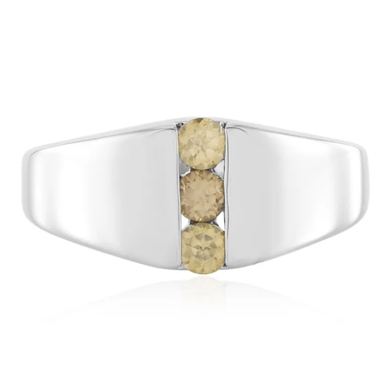 Wir präsentieren einen bezaubernden Ring mit drei leuchtend gelben Zirkonen aus Kambodscha von insgesamt 0,441 Karat. Jeder Zirkon hat einen brillanten Rundschliff und ist in hochwertiges, platiniertes 925er Sterlingsilber gefasst. Die Kombination aus warmen Farbtönen und glattem Silber bietet ein modernes und doch zeitloses Design. Perfekt, um Ihren Sommerpartys oder Ihrem Alltagsstil einen Hauch von Eleganz zu verleihen. Kombinieren Sie sie mit legerer oder formeller Kleidung für einen charmanten Look.