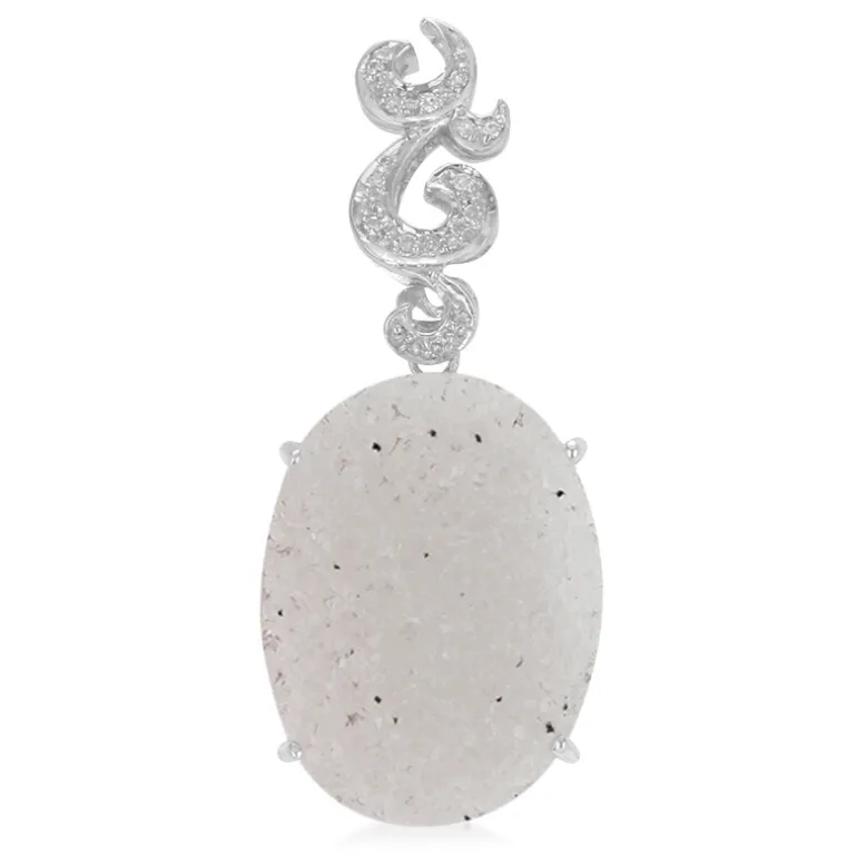 Unser Anhänger aus brasilianischem Glitzerachat mit einem ovalen Cabochon von 25,35 Karat, eingebettet in feines 925er Sterlingsilber, lässt Sie mit Raffinesse strahlen. Ergänzt durch 15 funkelnde Diamanten von insgesamt 0,04 Karat verbindet dieses Schmuckstück minimalistische Eleganz mit einem subtilen Funkeln. Der große Achatstein strahlt einen sanften Schimmer aus, der ihn zu einer vielseitigen Ergänzung sowohl für die Tages- als auch für die Abendgarderobe macht. Die einzigartigen Glitzereinschlüsse im Achat machen jeden Anhänger zu einem Unikat, perfekt für alle, die ihrer Schmucksammlung eine besondere Note verleihen möchten.