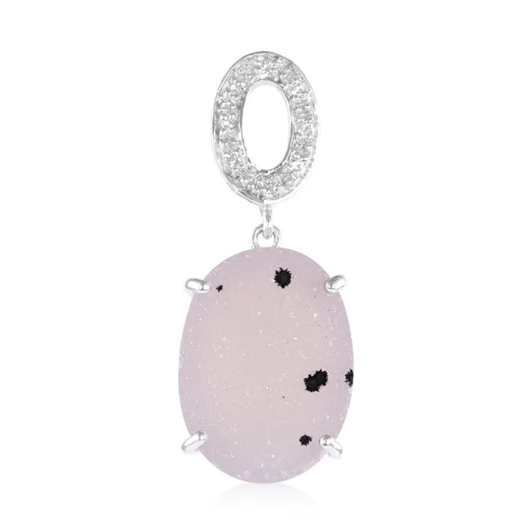 Dieser Anhänger aus brasilianischem Glitzerachat bezaubert mit seinem Schimmer. Der ovale Cabochon von 15,72 Karat glänzt mit einem subtilen Funkeln, das von einem Kranz aus acht zierlichen weißen Topasen akzentuiert wird. Dieser Anhänger aus feinem 925er Sterlingsilber strahlt sowohl moderne Eleganz als auch zeitlosen Charme aus und ist somit eine vielseitige Ergänzung für jede Schmucksammlung. Er eignet sich perfekt, um Ihrer Alltagskleidung einen Hauch von Raffinesse zu verleihen oder eine besondere Abendgarderobe aufzuwerten.
