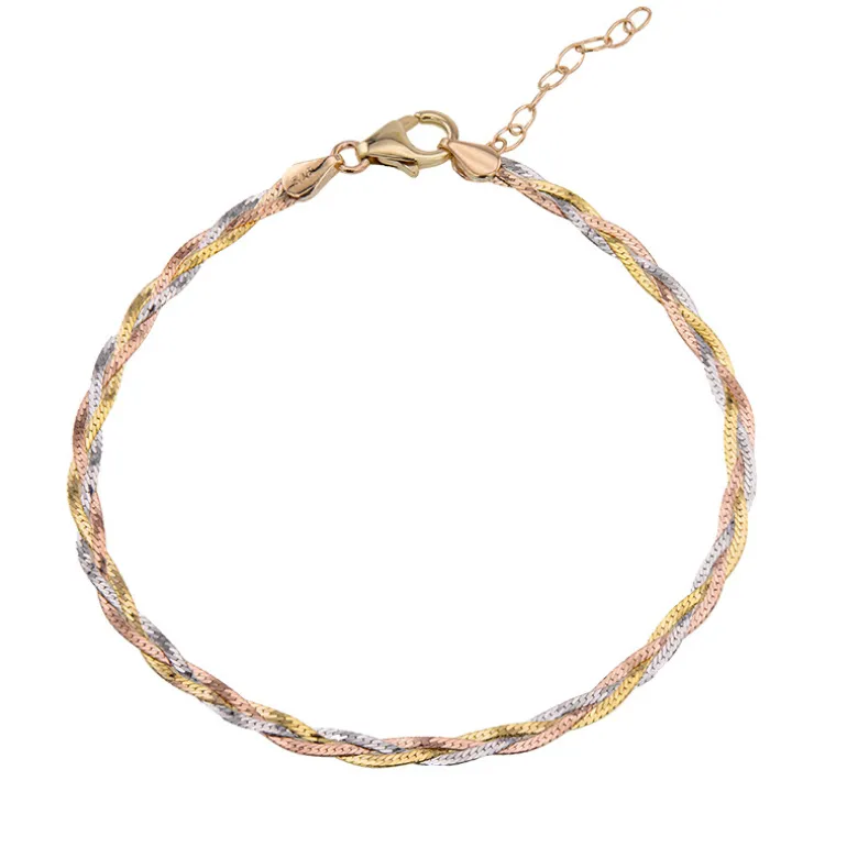 Dreifarbiges geflochtenes Armband aus 9K Gold