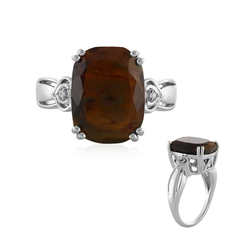 Dieser auffällige Ring zeigt einen prächtigen goldenen Pietersit aus Namibia mit einem fesselnden Antikschliff, der einen Vintage-Charme erzeugt. Er wiegt beeindruckende 9,289 Karat und misst etwa 16 x 12 mm. Flankiert wird er von zwei funkelnden Zirkon-Edelsteinen aus Kambodscha mit insgesamt 0,024 Karat. Das Band aus 925er Sterlingsilber ist für ein elegantes Finish fachmännisch plattiert. Mit einem Gesamtkaratgewicht von 9,313 ct verspricht dieses exquisite Stück, bei jeder Gelegenheit für Gesprächsstoff zu sorgen, von zwanglosen Zusammenkünften bis hin zu formelleren Veranstaltungen.