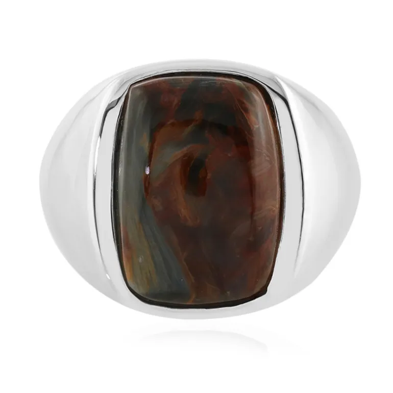 Entdecken Sie die faszinierende Schönheit dieses eleganten Goldenen Pietersit Rings mit einem 5,81 Karat großen Stein aus dem Herzen Namibias. Der Ring ist aus poliertem 925er Sterlingsilber gefertigt und hat einen antiken Cabochon-Schliff, der die erdigen Farbtöne des Edelsteins hervorhebt. Der 14×10 mm große Pietersit ist ein natürliches Kunstwerk, das Ihrem Ensemble einen Hauch von Eleganz verleiht. Dieser Ring ist sowohl für den Alltag als auch für besondere Anlässe geeignet und verspricht eine vielseitige Ergänzung Ihrer Schmucksammlung zu werden.