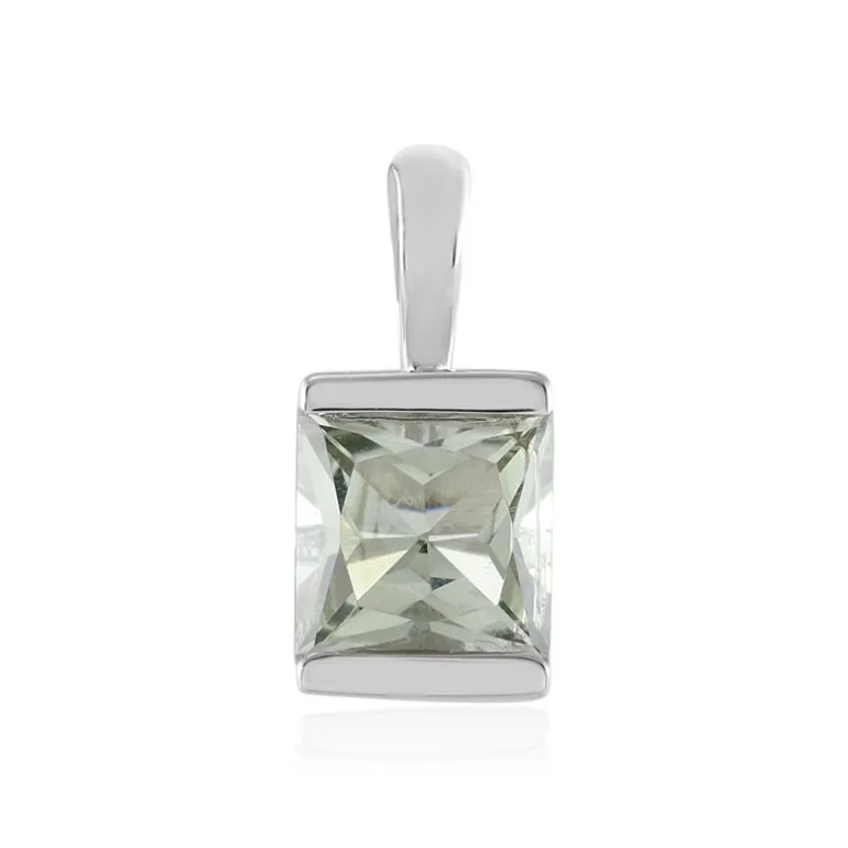 Dieser raffinierte Anhänger präsentiert einen atemberaubenden brasilianischen grünen Amethysten von 0,99 Karat, der im quadratischen Prinzessschliff geschliffen ist und das Licht bezaubernd einfängt. Der Anhänger ist aus platiniertem 925er Sterling Silber gefertigt und verbindet Langlebigkeit mit dem schimmernden Glanz des Edelmetalls. Seine Größe von 6 mm macht ihn zu einer vielseitigen Wahl, die sowohl das Alltagsoutfit als auch die Abendgarderobe aufwerten kann. Der Charme des Anhängers liegt in seiner Schlichtheit und dem subtilen Farbton des Edelsteins, der ihn zu einer zeitlosen Ergänzung jeder Schmucksammlung macht.