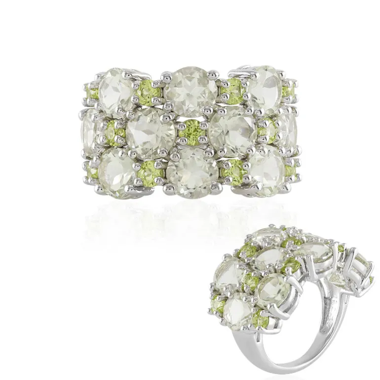 Brasilianischer grüner Amethyst & Peridot Silberring, 7,78ct