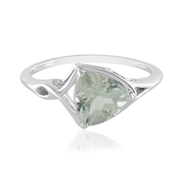 Entdecken Sie die Anziehungskraft dieses atemberaubenden Rings mit einem brasilianischen grünen Amethysten im Trillant-Schliff. Mit Sorgfalt aus 2,115 Karat Edelstein gefertigt und in hochwertigem 925er Sterlingsilber gefasst, ist dieser luxuriöse Ring ein Statement der Eleganz. Sein 9 mm großer Mittelteil wird durch ein schlankes Silberband mit einem Gewicht von ca. 2,35 g ergänzt. Sein modernes und stilvolles Design macht ihn sowohl für den Alltag als auch für besondere Anlässe vielseitig tragbar. Dieser Ring ist perfekt, um Ihrem Ensemble einen Hauch von Raffinesse zu verleihen. Er besticht durch seinen erfrischenden grünen Farbton und seine funkelnde Ausstrahlung.