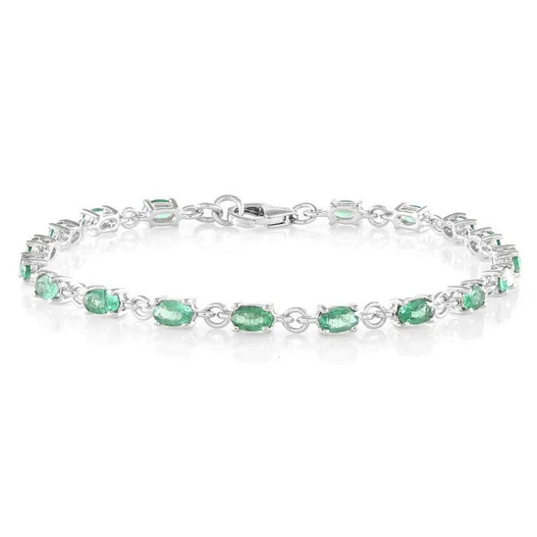 Entdecken Sie die Eleganz dieses atemberaubenden Armbands mit 18 leuchtend grünen Apatiten aus Madagaskar, von denen jeder im wunderschönen Ovalschliff das Licht einfängt und reflektiert. Das 19 cm lange Armband ist aus 925er Sterlingsilber gefertigt und mit einer eleganten Platinbeschichtung versehen, die für Stil und Raffinesse sorgt. Perfekt für Abendveranstaltungen oder als luxuriöses Accessoire für den Alltag ist es ein Muss für Edelsteinliebhaber.