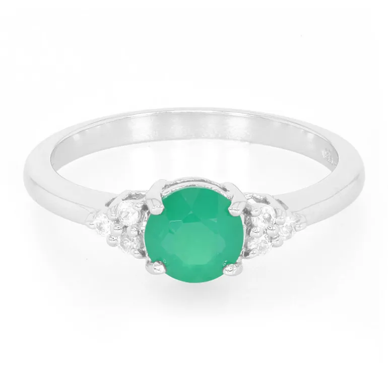 Brasilianischer grüner Chalcedon & Zirkon Silber Ring, 0,72ct
