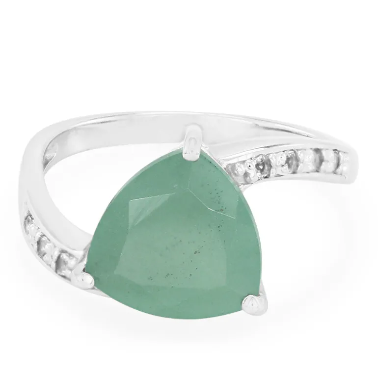 Entdecken Sie Eleganz mit diesem exquisiten Ring aus grünem Chalcedon mit einem atemberaubenden 2,8-karätigen Edelstein im Trillant-Schliff aus Brasilien. Dieser Ring aus Sterlingsilber wird durch acht funkelnde weiße Topas-Akzente veredelt und strahlt Raffinesse aus. Er eignet sich sowohl für legere als auch für formelle Anlässe und kann mit einem eleganten Abendkleid oder einem Hauch von Glamour für den Alltag kombiniert werden.