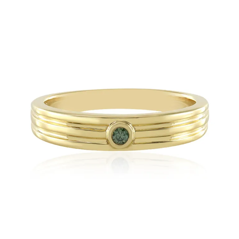 Entdecken Sie die schlichte Eleganz dieses schicken Rings aus vergoldetem 925er Sterlingsilber mit einem funkelnden grünen I3-Diamanten im Brillantschliff (0,027 Karat) als Herzstück. Der Ring ist in ein schlichtes, minimalistisches Design gefasst und verkörpert eine raffinierte Schlichtheit, die perfekt für das tägliche Tragen oder besondere Anlässe ist. Der Kontrast zwischen dem grünen Farbton des Diamanten und dem Goldton macht ihn zu einem idealen Accessoire sowohl für neutrale als auch für farbenfrohe Ensembles und verleiht jedem Outfit einen Hauch von Klasse.