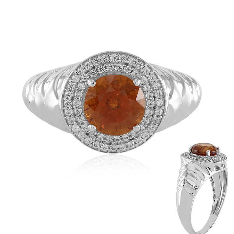 Entdecken Sie die Faszination dieses Rings aus 9 Karat Weißgold mit einem fein geschliffenen Hessonit-Granat von 2,644 Karat in seinem Herzen. Dieses majestätische Schmuckstück ist zusätzlich mit 58 funkelnden Zirkonen aus Kambodscha verziert, die dem Design weitere 0,408ct hinzufügen. Mit einem Edelsteingewicht von insgesamt 3,052 ct ist er ein Statement von raffinierter Eleganz. Dieser Ring ist ideal für besondere Anlässe oder alltäglichen Luxus und bringt Wärme und Glanz in jedes Ensemble.