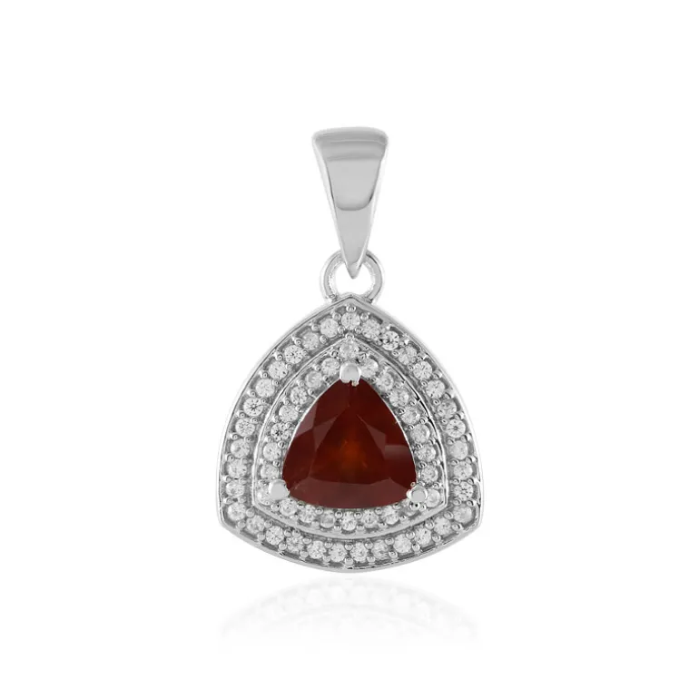 Tauchen Sie ein in den warmen Glanz dieses prächtigen indischen Hessonit-Granat-Anhängers im Trillant-Schliff. Eingebettet in einen doppelten Halo aus funkelnden Zirkonsteinen im Rundschliff aus Kambodscha mit einem Gesamtgewicht von 0,379 ct, strahlt dieses Schmuckstück eine strahlende Eleganz aus. Der Anhänger ist aus platiniertem 925er Sterlingsilber gefertigt und strahlt Raffinesse aus. Er ist ideal für Abendveranstaltungen oder als Statement-Stück für den Tag und passt sowohl zu legeren Blusen als auch zu formellen Kleidern. Der Anhänger ist eine vielseitige Ergänzung für jede Schmucksammlung und zieht mit seinen tief orangefarbenen Tönen und schimmernden Konturen alle Blicke auf sich.