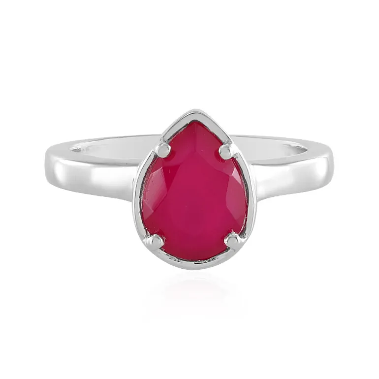 Entdecken Sie die faszinierende Anziehungskraft dieses handgefertigten Schmuckstücks mit einem üppigen Himbeer-Chalcedon aus Indien, eingefasst in glänzendes, platiniertes Sterlingsilber. Der Edelstein mit einem Gewicht von 1,41 Karat ist meisterhaft in Tropfenform geschliffen und misst ca. 9 x 7 mm und ist das Herzstück dieses eleganten Rings. Sein leuchtender Farbton ist perfekt, um Ihrem Ensemble einen Farbakzent zu verleihen und macht ihn zu einem idealen Accessoire für legere und formelle Anlässe.