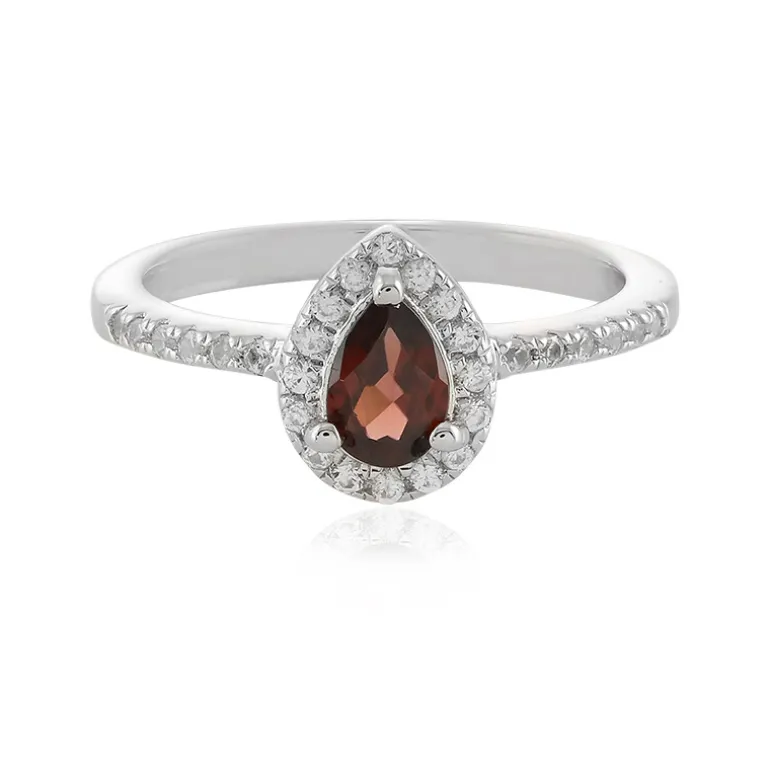 Entdecken Sie die Anziehungskraft unseres Raspberry Zircon Teardrop Silver Ring, ein Leuchtfeuer von Charme und Raffinesse. Dieser Ring aus glänzendem 925er Sterling Silber mit einem Gewicht von ca. 2,31 g ist mit einem tropfenförmigen kambodschanischen Himbeerzirkon von 0,613 ct besetzt. Das Mittelstück wird von einem Halo aus sorgfältig geschliffenen runden kambodschanischen Zirkonen umrahmt, die dem Ensemble weitere 0,25ct hinzufügen. Der leuchtende Himbeerton auf dem Silber bildet einen auffälligen Kontrast und ist perfekt, um Ihrem Outfit einen Hauch von Farbe zu verleihen. Dieser Ring eignet sich sowohl für legere als auch für formelle Anlässe und ist ein echter Hingucker, der bei jedem gesellschaftlichen Anlass für Gesprächsstoff sorgt.