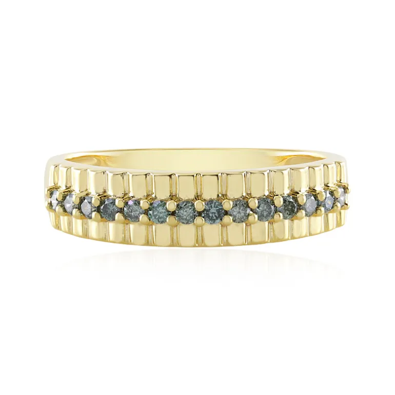 Entdecken Sie die Anziehungskraft dieses vergoldeten Armbands aus 925er Sterlingsilber, das mit einer Reihe von 14 himmelblauen Diamanten von insgesamt 0,189 Karat akzentuiert ist. Diese Edelsteine sind im Brillantschliff geschliffen und fangen das Wesen des Himmels an Ihrem Finger ein. Dieser Ring ist ideal, um einem neutralen Outfit einen farblichen Akzent zu verleihen oder ein Ensemble mit blauen Motiven zu ergänzen. Eine perfekte Ergänzung für alle, die eine Mischung aus klassischem Charme und modernem Flair schätzen.
