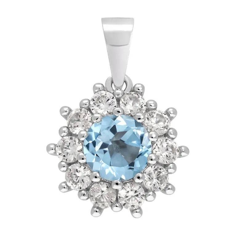 Brasilianischer Himmelblauer Topas & Zirkon Silberanhänger, 2,55ct