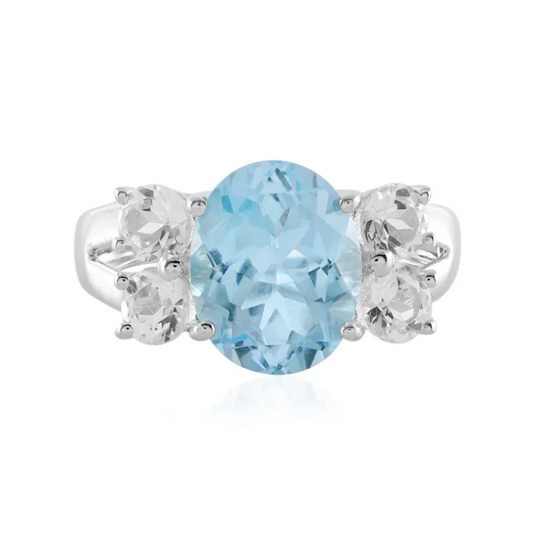 Treten Sie ein in eine Welt der heiteren Eleganz mit diesem fesselnden Sky Blue Topaz Ring. Der zentrale Edelstein aus Brasilien hat ein Gewicht von 3,781 ct und einen exquisiten ovalen Schliff, umrahmt von funkelnden weißen Topasen mit einem Gesamtgewicht von 1,214 ct. Dieses strahlende Ensemble ist in fein verarbeitetes 925er Sterlingsilber mit einer hochwertigen Platinbeschichtung für dauerhaften Glanz gefasst. Dieser Ring eignet sich sowohl für einen legeren Brunch als auch für ein formelles Abendessen und verleiht jedem Ensemble einen Hauch von Raffinesse.