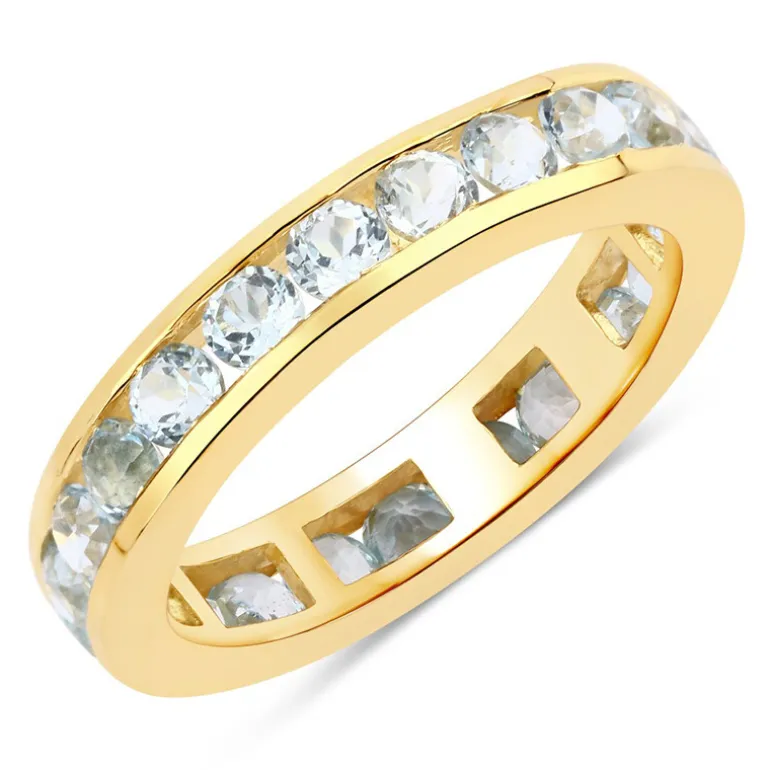 Entdecken Sie die Anziehungskraft dieses Rings mit himmelblauem Topas, der elegant in vergoldetes Silber gefasst ist und einen Hauch von sonnengeküsster Opulenz vermittelt. Der ruhige Farbton des Topas ergänzt die warme Ausstrahlung des Goldes und macht ihn zu einem idealen Accessoire für jedes Ensemble. Ob beim Brunch oder in der Abendgarderobe – dieser Ring ist ein echter Hingucker. Erfreuen Sie sich an der Schönheit, die nur der perfekte Hauch von Himmelblau bieten kann.