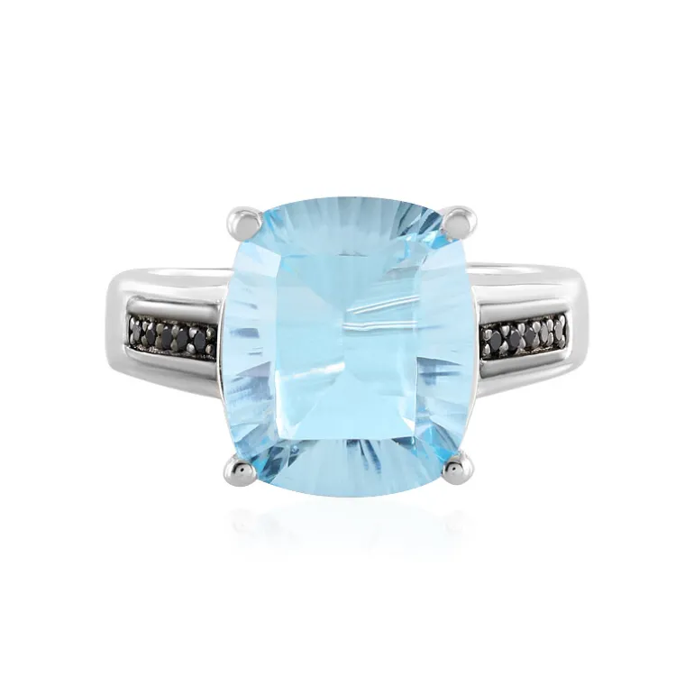 Himmelblauer Topas & Schwarzer Spinell Silberring, Brasilien, 5,56ct