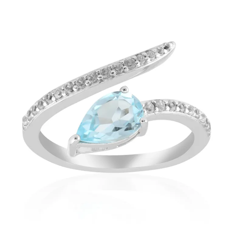 Entdecken Sie die Eleganz dieses himmelblauen Topas-Sterlingsilberrings. Mit einem exquisiten birnenförmigen Topas von 0,898 Karat aus Brasilien, umgeben von 25 schimmernden Zirkonen aus Tansania, besticht er mit einem Gesamtkaratgewicht von 1,156 Karat. Dieser Ring eignet sich perfekt, um jedem Outfit einen Hauch von Raffinesse zu verleihen, und ist ideal für besondere Anlässe oder den glamourösen Alltag. Kombinieren Sie ihn mit einem eleganten Abendkleid für einen auffälligen Look.
